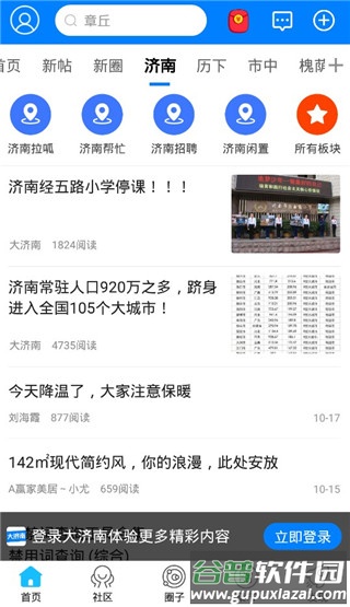 2、首页展示济南各区域的动态新闻,可浏览关注。