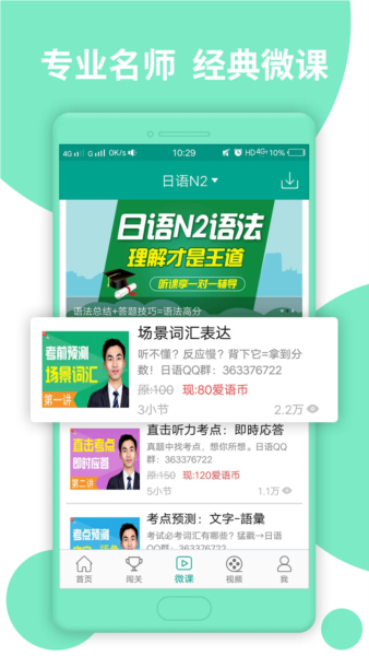 4、拥有名师制作的系列微课程,内容从标准日本语初级延伸至高级,系统讲解词汇与语法。