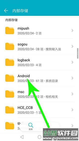 进入内部存储后向下滑动,点击“Android”文件夹。
