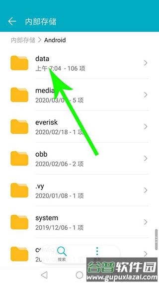 打开“Android”文件夹并向下滑动,点击“data”文件夹。