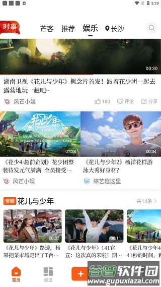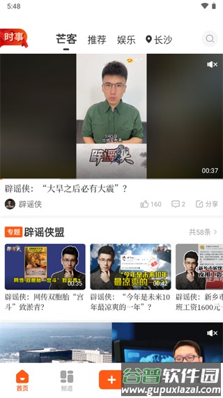 3、推荐栏目主要以短视频形式呈现类似内容;喜欢娱乐、综艺或八卦消息的用户,可以进入娱乐板块查看相关内容。