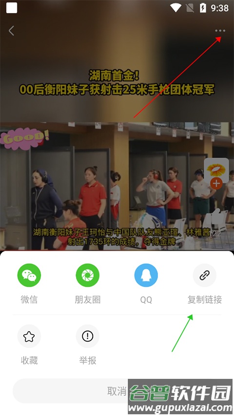 1、观看视频时,点击播放页面右上角的扩展图标(下图红箭头处),在底部弹出的选项中选择【复制链接】(下图绿箭头处)。