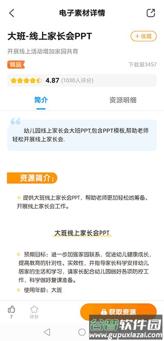 2、素材资源充足:提供大量高清图谱、环创手工、纸面教具、调查表、海报、奖状、手指操、动画及古诗等电子素材,帮助教师高效备课;