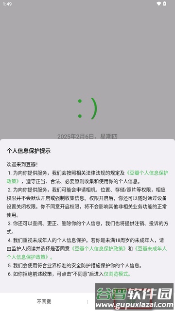 1. 安装完成后打开应用,首先阅读隐私协议界面。