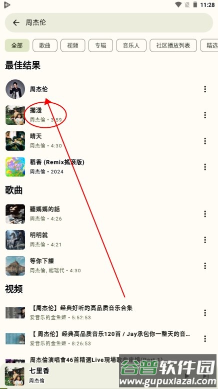 4、相关的音乐结果会立刻呈现出来;