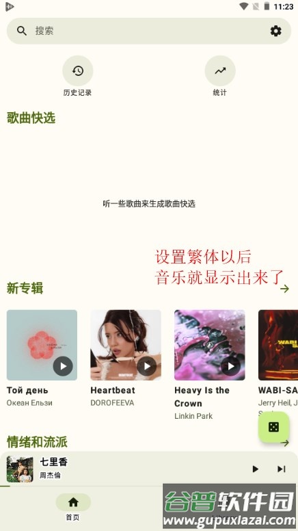 1、当设备系统为安卓9或更高版本时,应用界面可能会显示无可用歌曲;