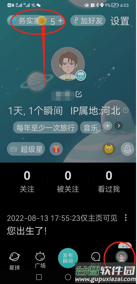 第一步:打开Soul应用,进入“自己”页面。点击左上角显示的金币图标,位置参考下图:
