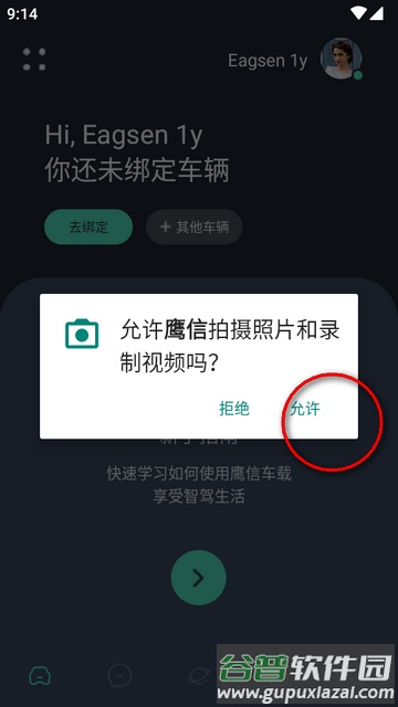 3、点击界面上方的去绑定车辆选项,按提示获取相关权限并选择允许。