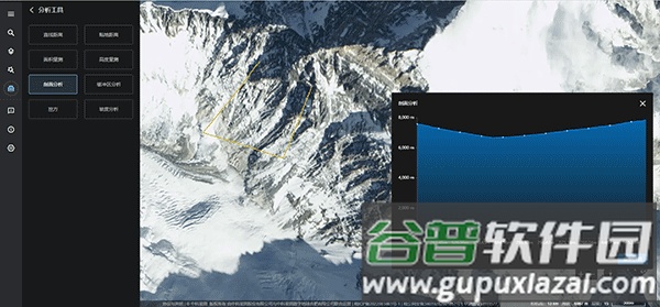 提供直线与贴地距离测量、面积测算、高度分析及剖面分析等空间测绘工具。