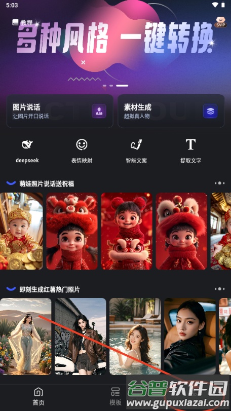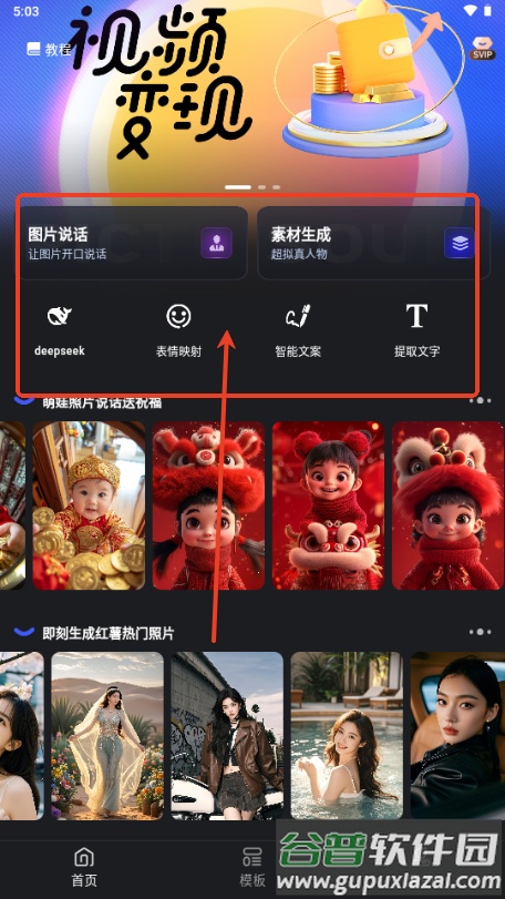 1. 成功登录后进入应用首页,根据创作需求选择相应功能模块,例如图片说话、素材生成或deepseek对话创作等;