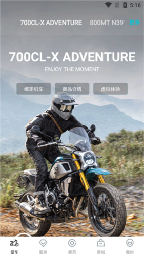 1、在软件首页可以绑定个人摩托车,也能在线预约试驾体验;