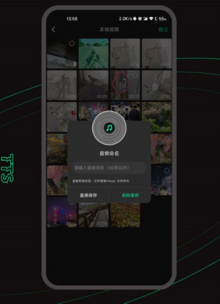5、可从本地视频中提取背景音乐,提取后的音频可直接设为手机铃声。