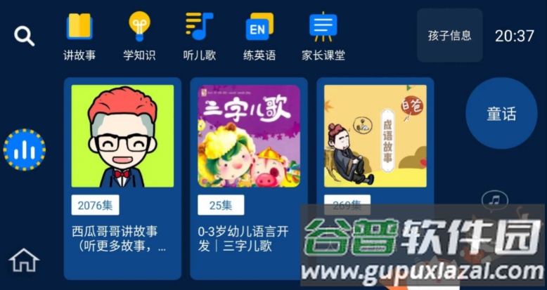 分类多样资源齐全;软件包含讲故事、学知识、听儿歌、练英语、热门榜单以及家长课堂等多个核心部分。