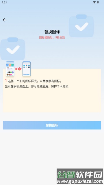 3.点击替换图标功能,挑选一个用于伪装的应用图标。