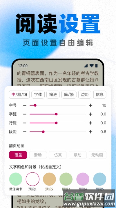 2、支持调整字体尺寸、字距、行距、段落间距,并能更换颜色与背景;