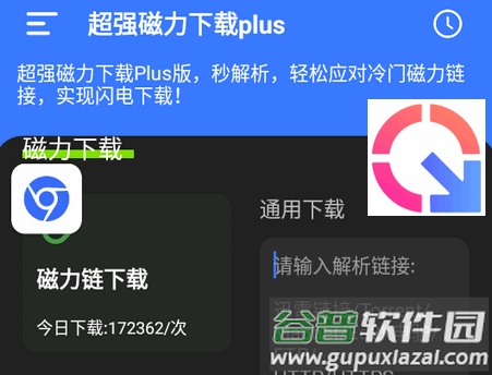 启动软件后,在首页即可输入或粘贴解析链接开始下载任务;软件同时提供一键搜索与网站搜索入口。通过磁力链接,用户能够获取电影、音乐、电子书及软件等多种资源。