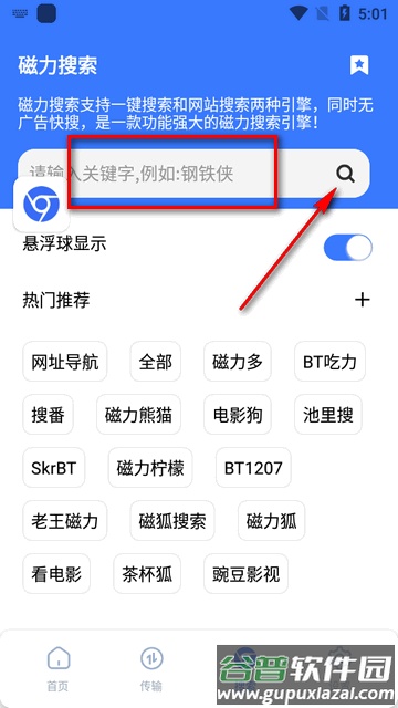 2、进入搜索页面,输入关键词即可开始查找。