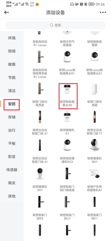 2、在安防分类中选择需要连接的摄像头型号,例如联想智能摄像头XR。