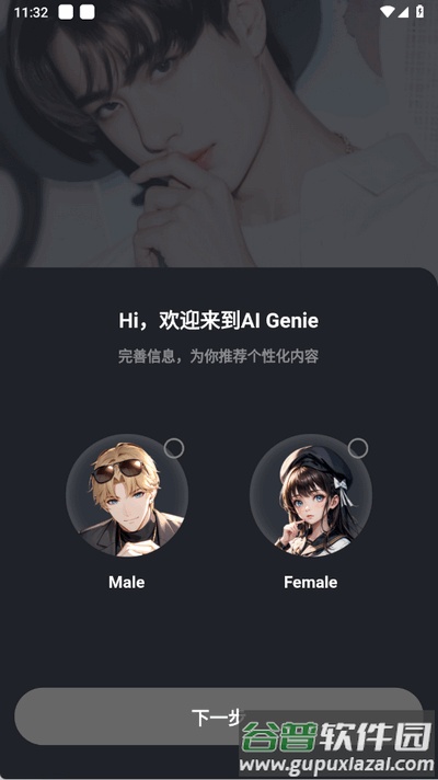 1、启动应用程序,首先选择你希望的智能体性别。