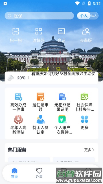 1、首先安装最新官方版本渝快办app至手机。