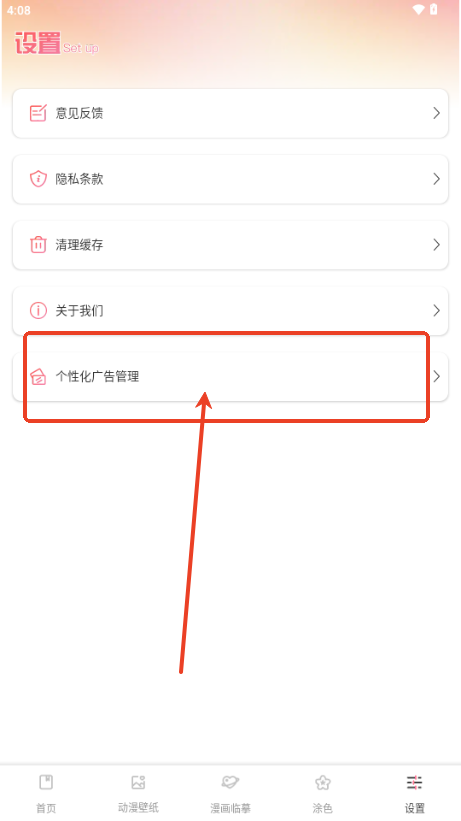 2、在设置菜单中找到个性化广告选项;