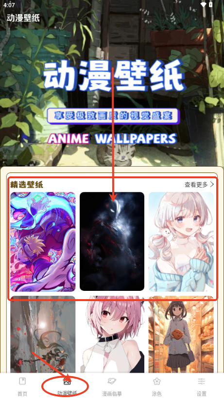 4、切换到动漫壁纸区,所有壁纸均可选择下载并保存到本地;