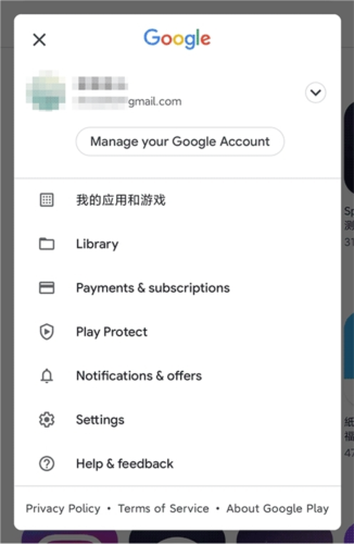 3、在手机中打开英文版的Play Store,依次点击右上角头像、Settings(设置)、General(常规)、Account preferences(帐号和设备偏好设置)。