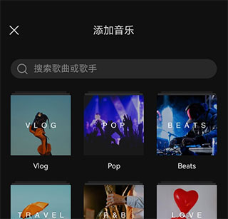 从海量音乐库与音效素材中选择合适的音频添加到视频中。