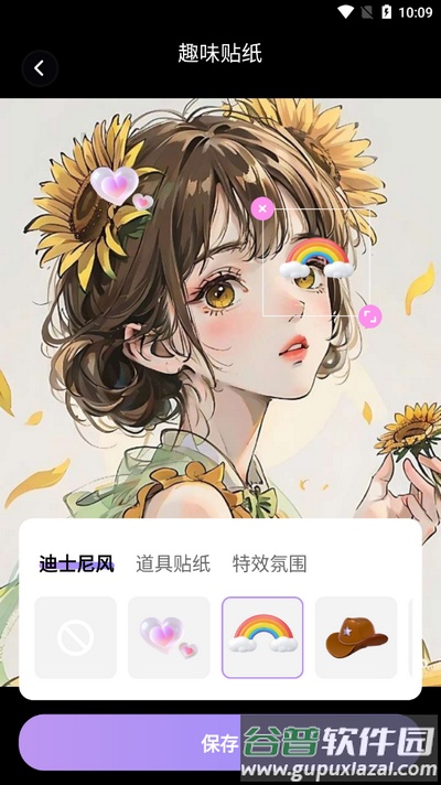 3、为图片添加贴纸并进行装饰,完成后点击保存按钮即可。