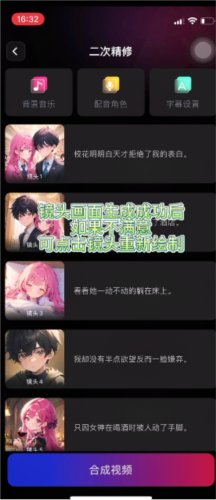 6、若对某个镜头画面不满意,可点击该镜头重新进行绘制;