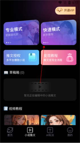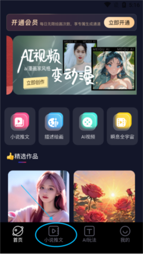 1、打开美趣ai应用,找到并点击小说推文功能入口;