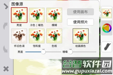 注意:使用画笔时需确认是否选中了“色彩源”或“原图效果”。选择“色彩源”时,画笔将应用色彩源中的颜色;选择“原图效果”,画笔则会智能提取并应用原始图像的颜色。