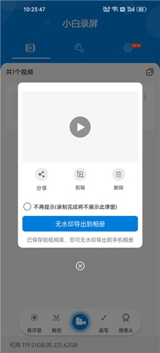 5、录制结束后,点击【无水印导出相册】即可保存视频至手机。