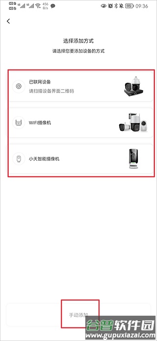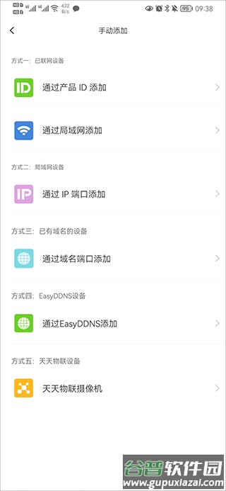 4、若无法扫码,可在添加方式界面选择手动添加,通过输入产品ID或局域网搜索等方式进行连接。
