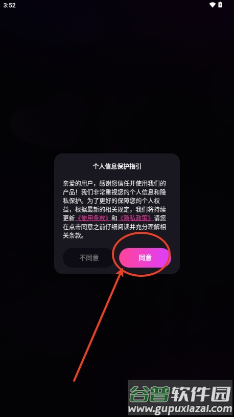 1、启动应用后,点击同意相关用户政策。