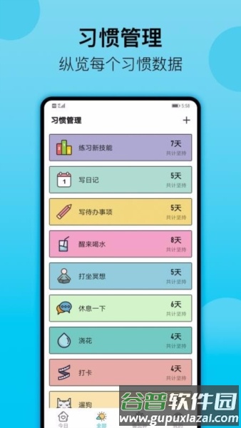 2、全部习惯:集中展示所有已设定的习惯目标;
