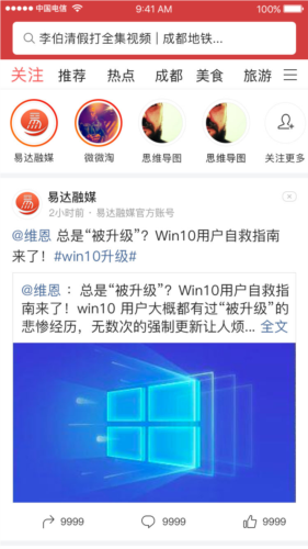 2、提供众多主题关注号,包括易达融媒、微微淘、思维导图及其他可供订阅的账号。