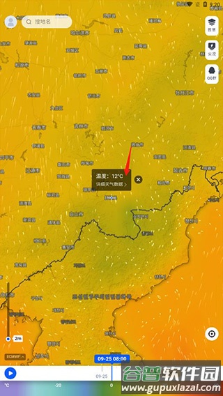 6.若将图层切换为温度,便能快速获知该地区的具体温度数值;