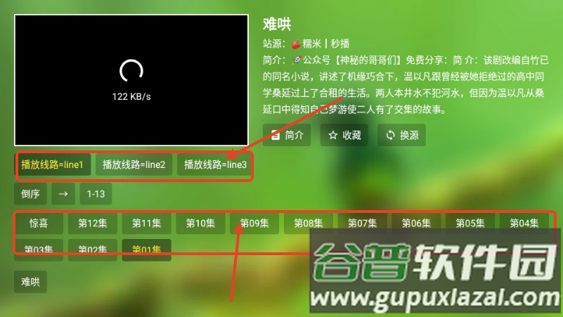 2、进入详情页面,点击选择一个可用的播放源;