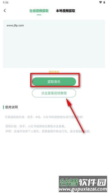 2、进入后,直接粘贴抖音、快手、B站或小红书等平台的视频链接,即可提取其中的音频。