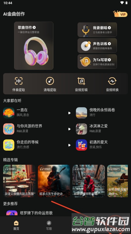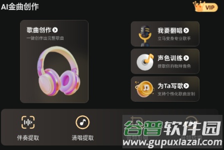 3、在功能选择页,根据需求挑选歌曲创作、歌曲翻唱或歌词写作等不同模式;