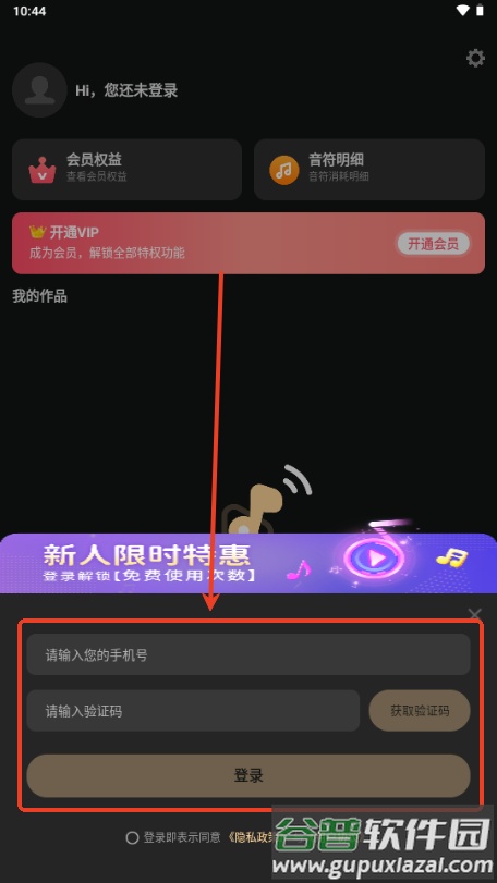 3、在登录页面,输入你的手机号码并获取短信验证码;