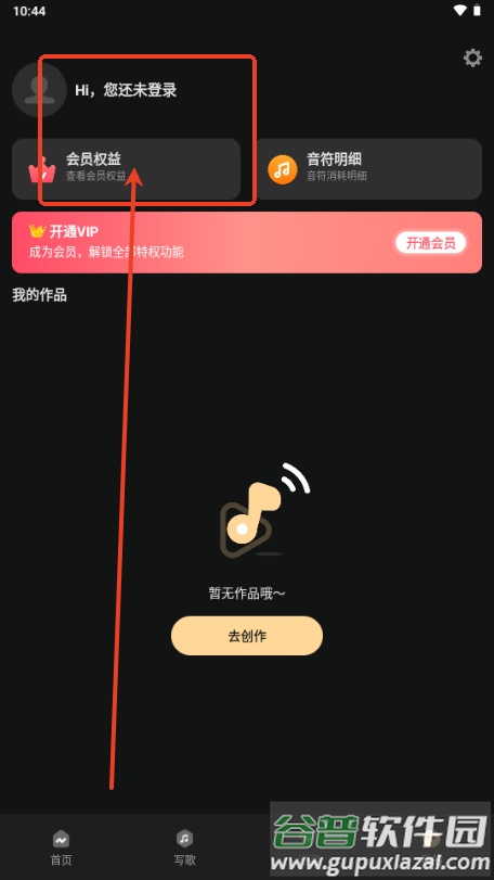 2、进入应用主界面,点击开始音乐创作的入口;