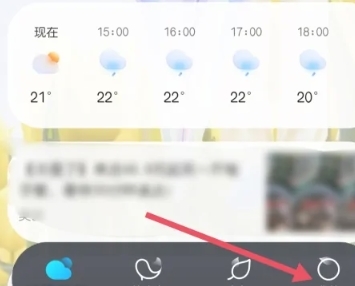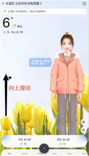 1、打开开心天气,启用手机定位查看当地天气,向上滑动屏幕;