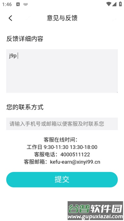 2、输入需要反馈的具体内容,完成后点击提交按钮。