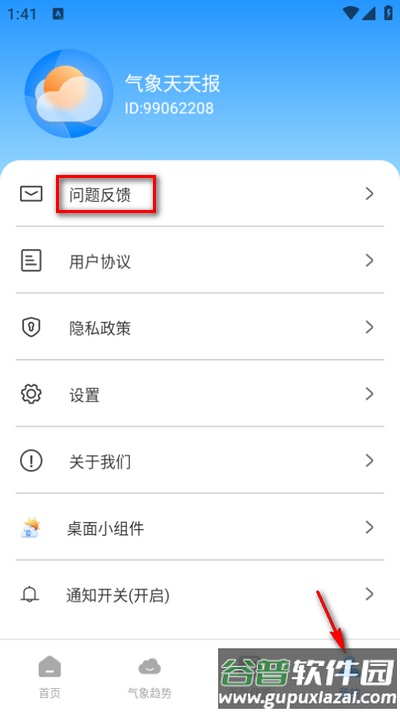 1、点击右下角“我的”页面,再点击页面上方的“意见反馈”入口。