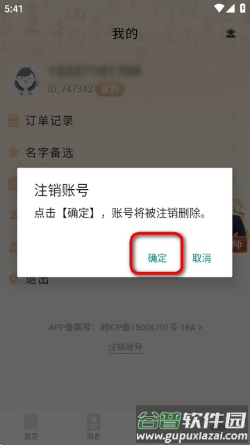 2、点击注销按钮并在确认提示中确定操作,账号注销流程即完成。