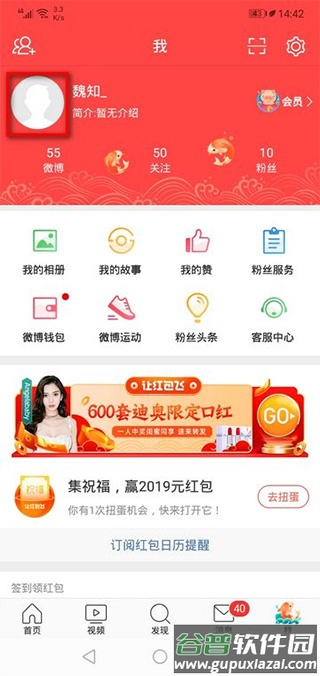 3、点击页面左上方的个人头像。