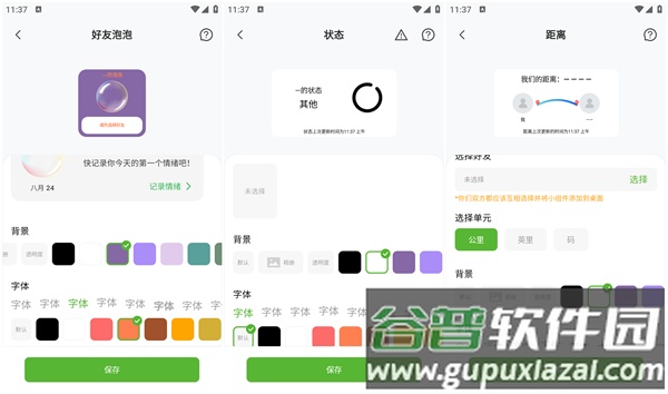 应用内还提供多种有趣组件,例如状态组件:可自定义状态并在好友锁屏上显示24小时,每20分钟自动同步更新;朋友笔记组件:在对方锁屏上展示你留下的短句,内容可随时修改;图标文本组件:自选图标并添加备注,适合记录提醒或鼓励话语。