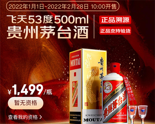用户须完成实名认证,未认证账户无法预约或抢购飞天53度500ml贵州茅台酒。抢购资格取决于用户在前3个自然月内的消费记录,需同时满足以下条件:
